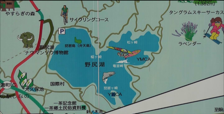 東京YWCA野尻キャンプ場は野尻湖のこの辺りにあります。